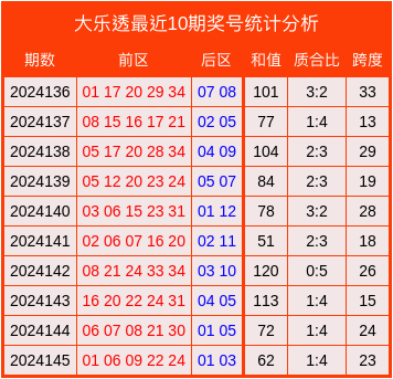 国外足球直播平台最近10期大乐透奖号统计分析表